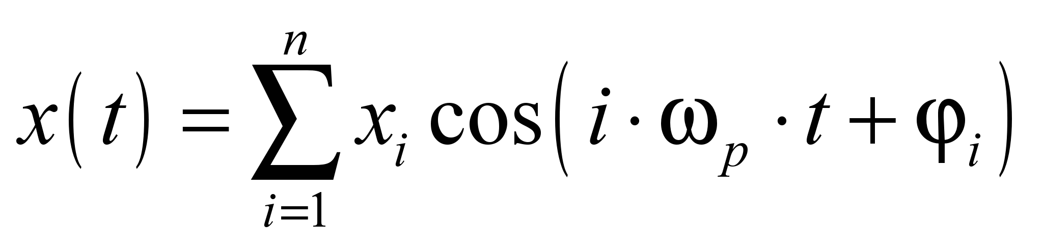 где xi — амплитуда i-й частоты; ωр — частота вращения ротора машины; φi — начальная фаза i-й частоты; n — число независимых частот вибрации.