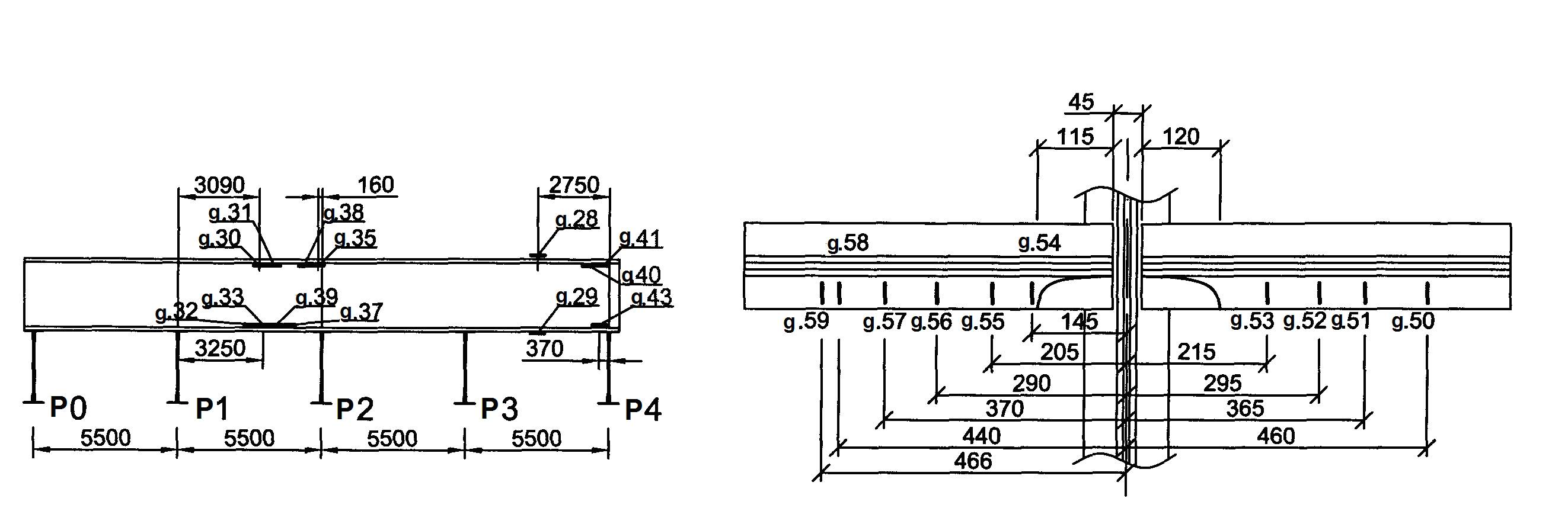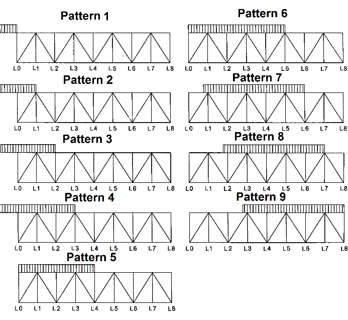 For the end floor beam P0, which is the most intensively involved in joint work with the truss booms, an unfavorable test load setting became the loading according to pattern 6.