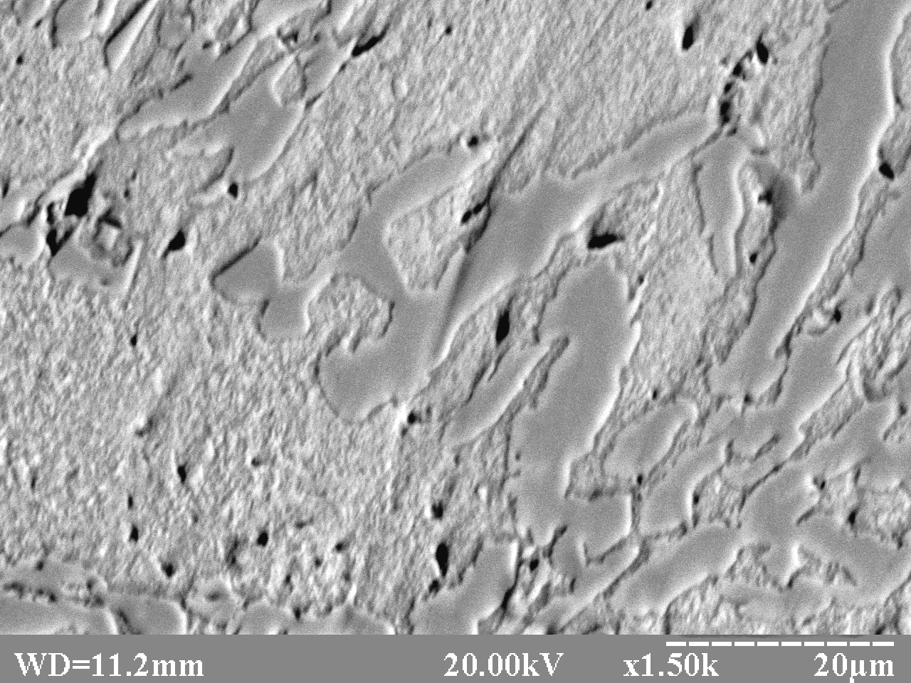 Применение комплексного легирования высокохромистых чугунов позволяет формировать в них структуры, состоящие из заданного типа карбидов и соответствующей металлической основы, что существенно повышает эксплуатационные свойства литых деталей [16–18, 20]. В период кристаллизации и охлаждения в этих чугунах образуются неравновесные структуры, вследствие чего при термической обработке содержание хрома в карбидах повышается, а в металлической основе – снижается [3, 5, 10, 11]. Особенно сильные изменения химического состава металлической основы протекают в локальных объемах возле карбидов [19]. Гомогенизация металлической основы затруднена из-за сильного легирования твердого раствора.