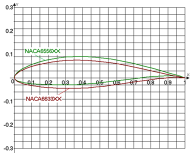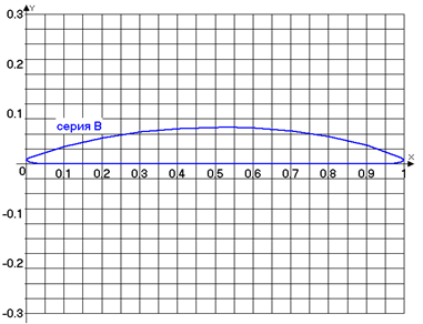 При одинаковых общих геометрических параметрах исследовались винты с профилями (рис. 3):
