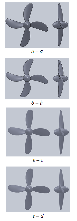 Следует отметить, что в качестве базового выбран четырёхлопастной гребной винт правого вращения с саблевидным типом контура.