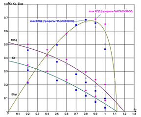 3. Очевидно, что, действуя подобным образом, можно подбирать как тип профиля, так и зависимость его характеристик от радиуса лопасти, которые будут способствовать повышению КПД гребных винтов на расчетных режимах их работы.