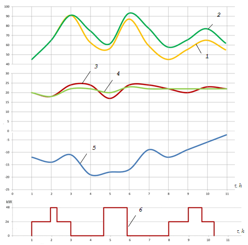 The work [2] considers the water heating system with smooth regulation of heating output of heating pipes at boiler combined heating. The system is designed for smooth regulation and stabilization of the heat transfer fluid temperature at the inlet to the heating devices, respectively, at transient and steady-state modes, stabilizing the air temperatures inside the car during cycling of high-voltage heating groups of the boiler, and also when the boiler is operated with solid fuel.
