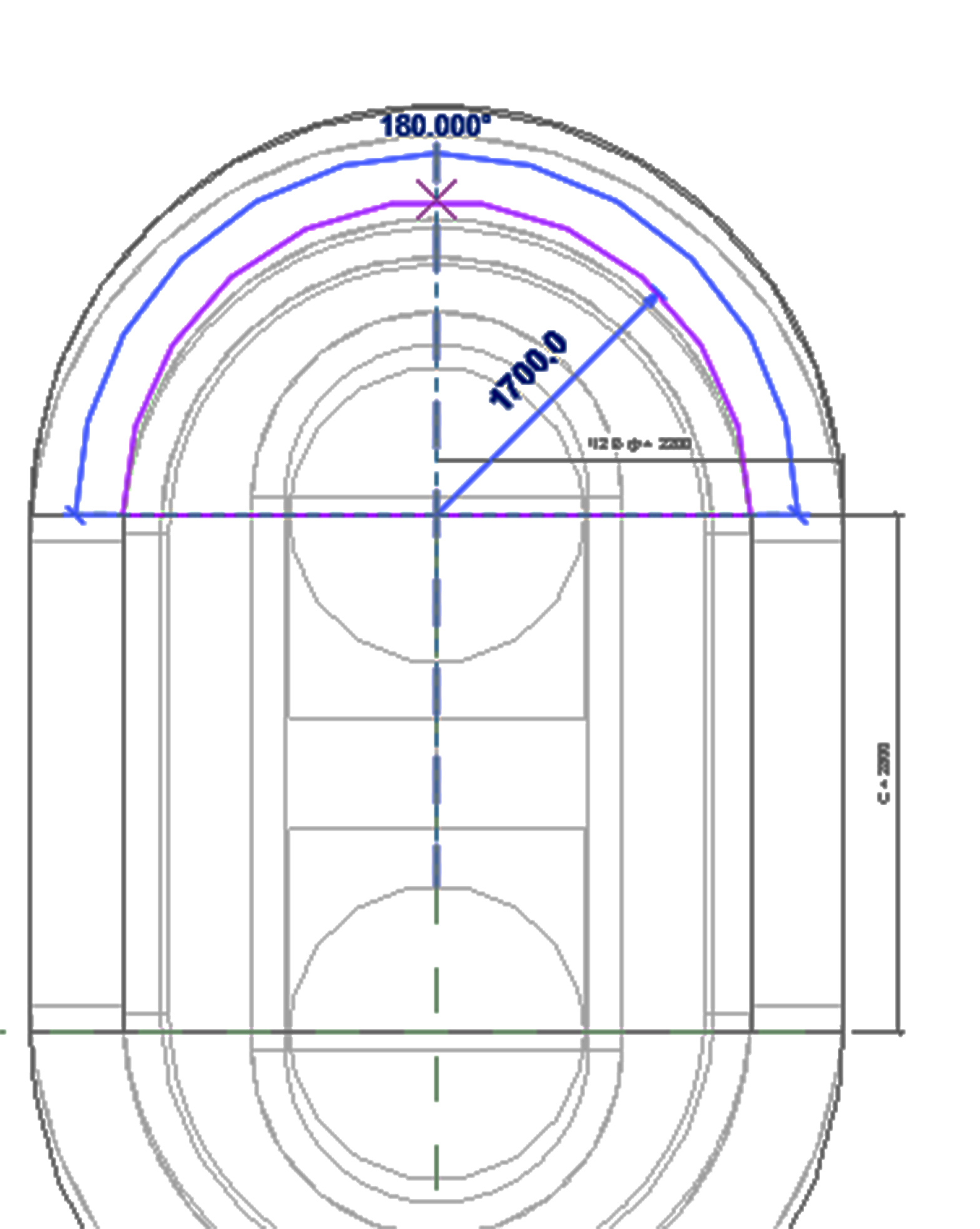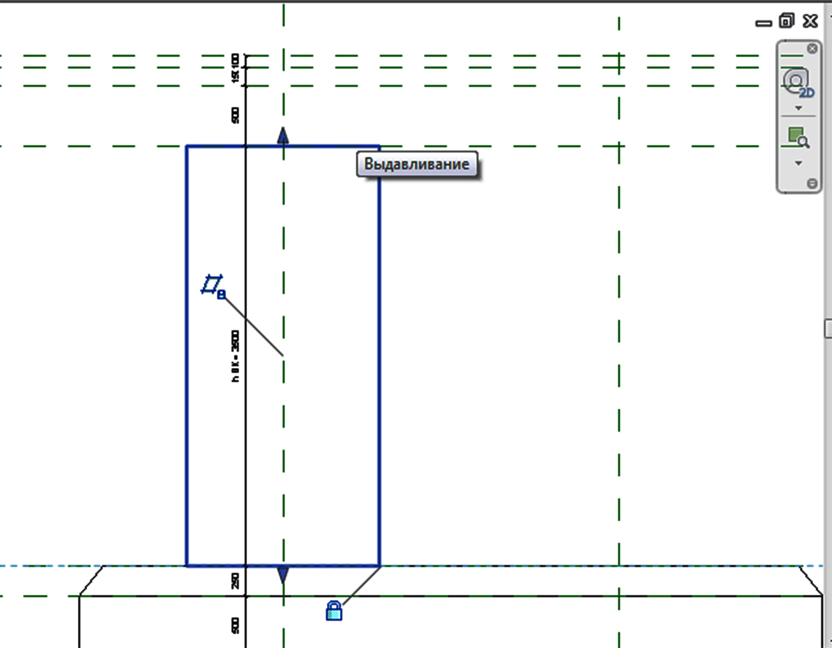 Перейдемо на опорний рівень плану та активізуємо команду «СОЗДАТЬ» – «ФОРМУ» – «ВЫДАВЛИВАНИЕ». Створимо спочатку частину фундаменту між опорними вертикальними площинами, що розташовані на відстані С.
