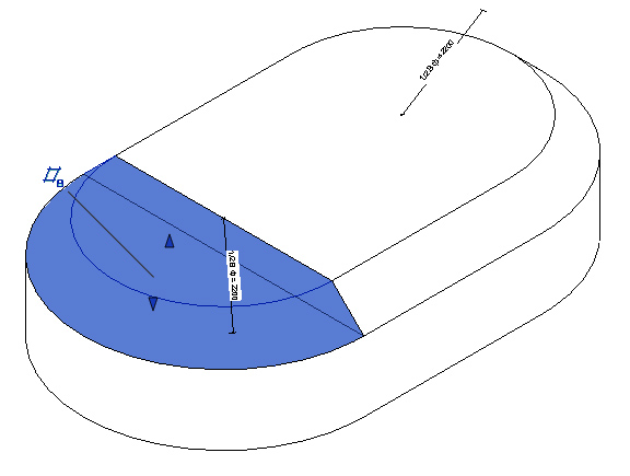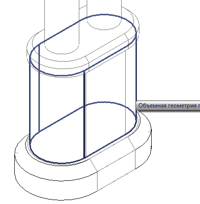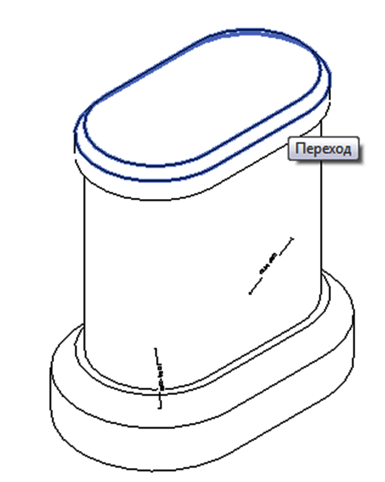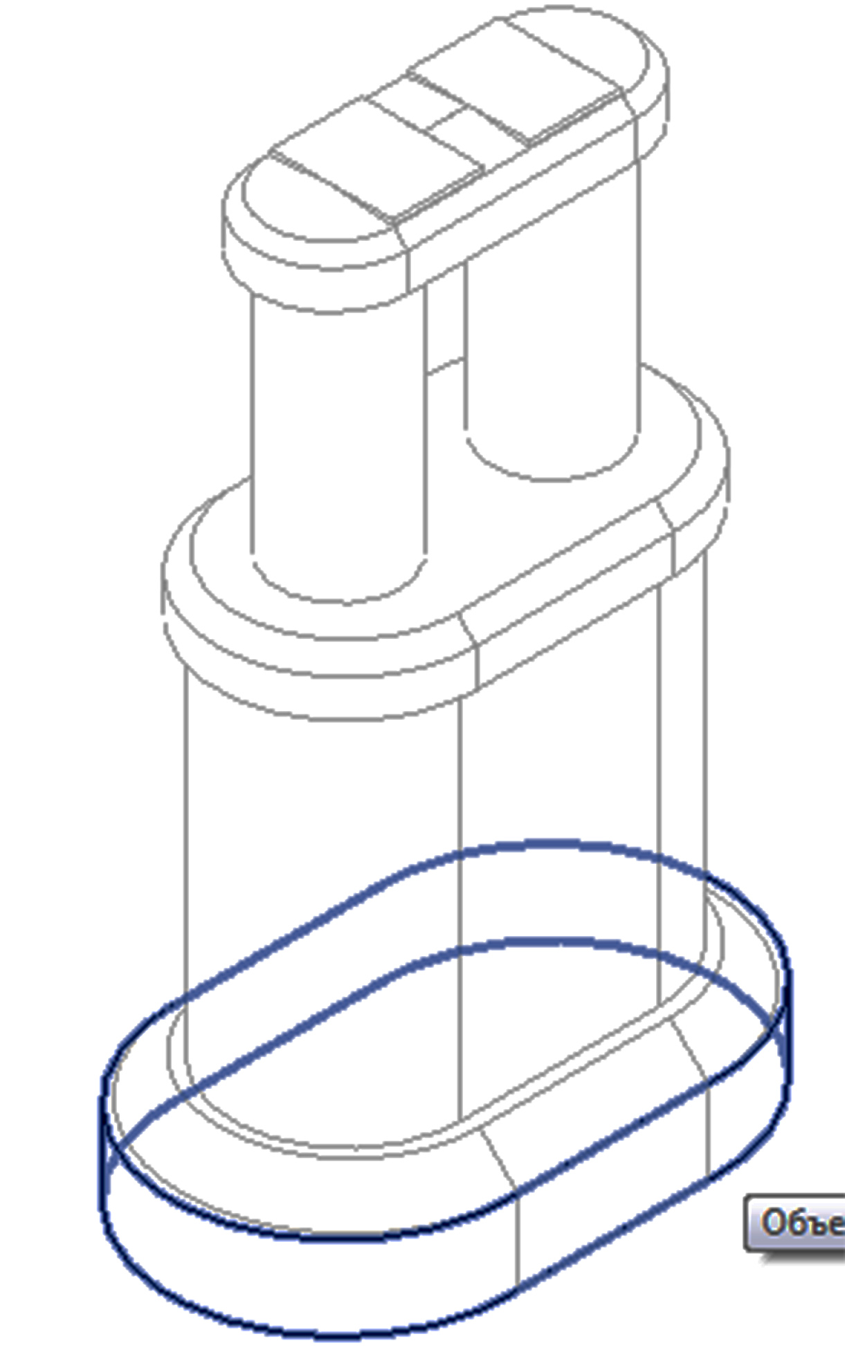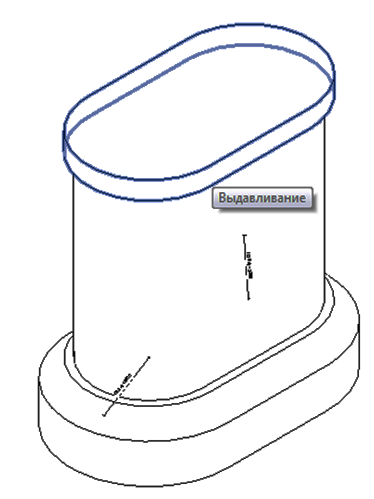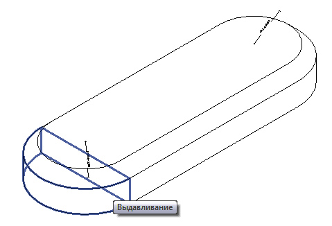 Для цього будуємо контур півкола радіусом R=Вф/2, замкнутого відрізком прямої. Дугу кола прив’язуємо до кутів першого тіла та виконуємо видавлювання з тими ж параметрами. (рис. 5, д).