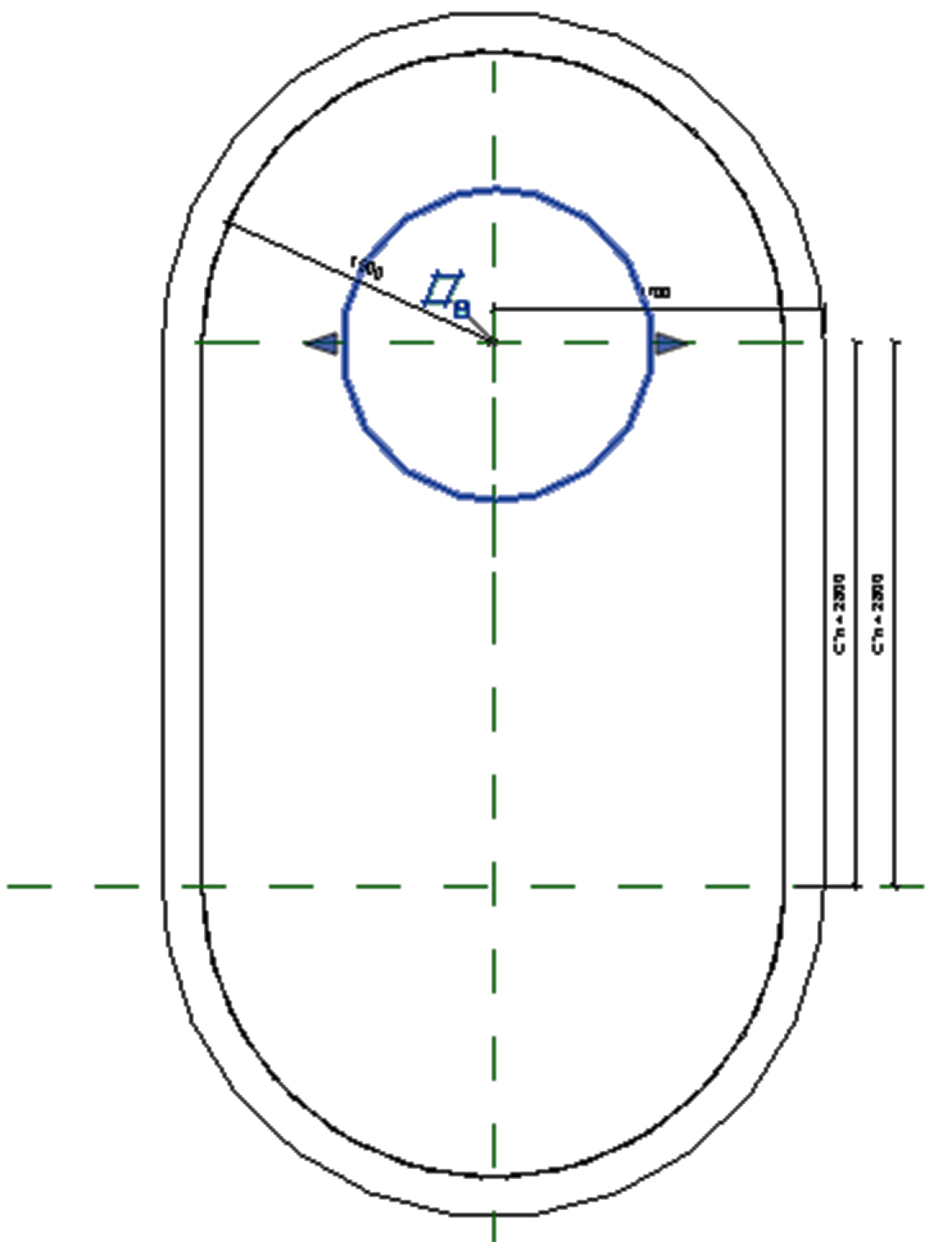 Перейдемо на рівень зрізу проміжної плити, прив’язуючись до вертикальної опорної площини, створимо тіло видавлювання в основі якого коло діаметром d ВК (рис. 8, а). Одразу введемо параметр діаметра колони в таблиці «ТИПОРАЗМЕРЫ В СИМЕЙСТВЕ» та закріпимо колону за вертикальними площинами у вікні «фасад-зліва» (рис. 8, б).