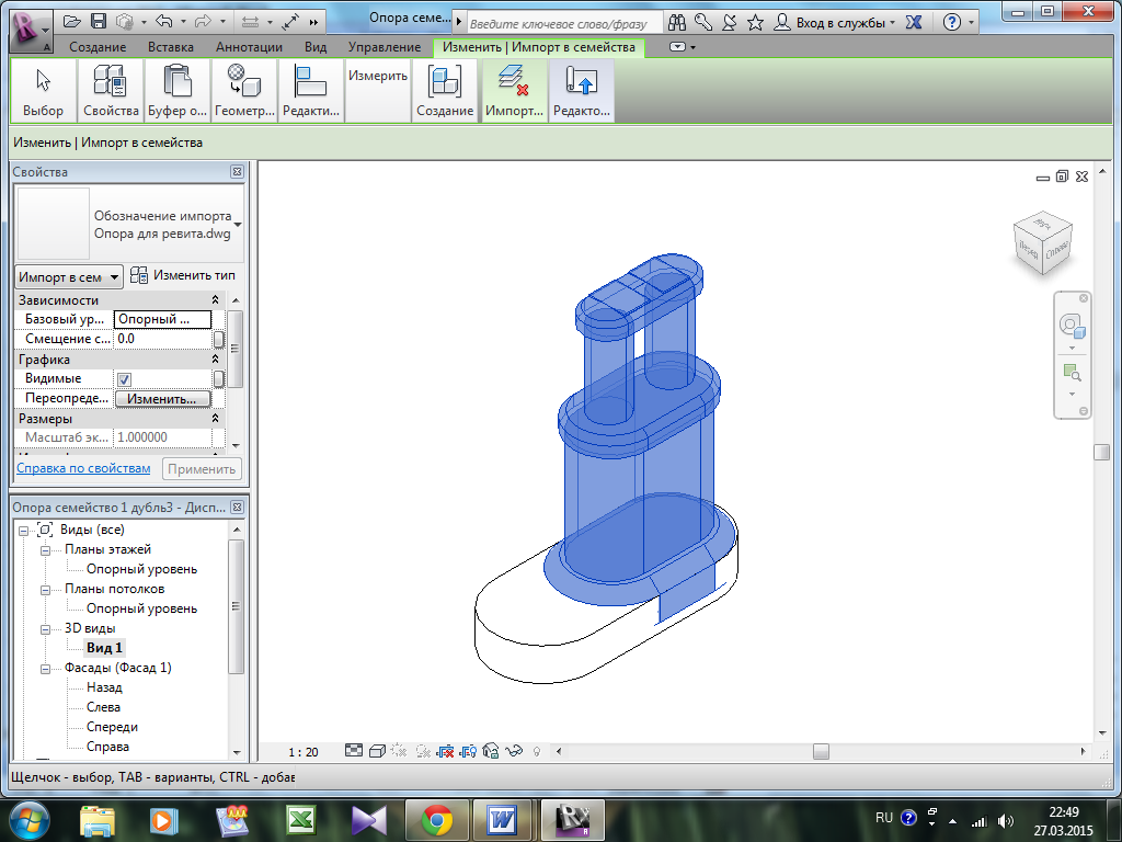 Пропонується розглянути деякі можливості Autodesk Revit по створенню параметричних об’єктів, на прикладі побудови залізобетонної проміжної опори моста, перевірити можливість зміни розмірів моделі без зміни геометрії об’єкта та проаналізувати доцільність створення параметричних моделей.