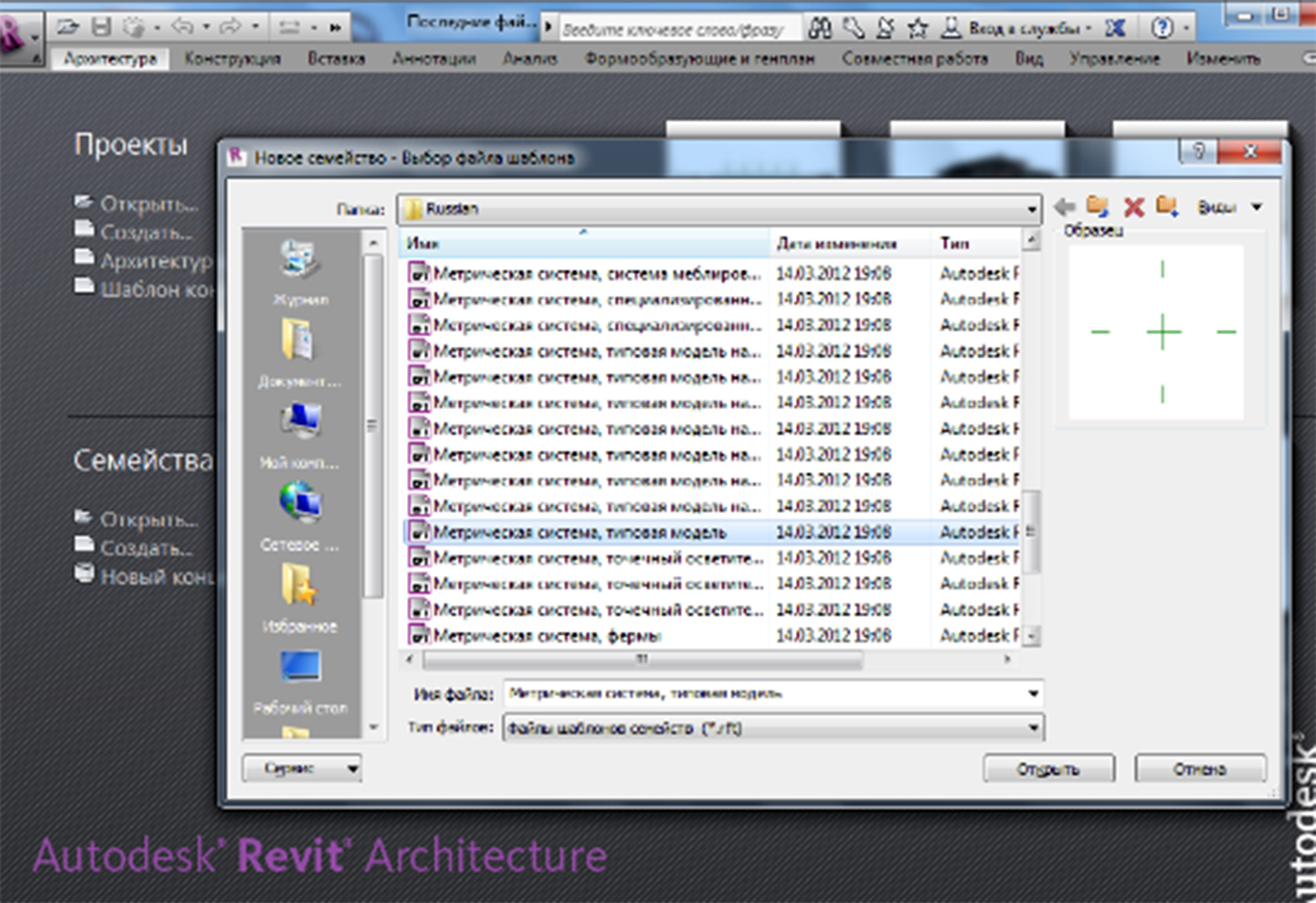 Відкривши Revit, слід створити сімейство на базі метричної системи, типової моделі (рис. 2).