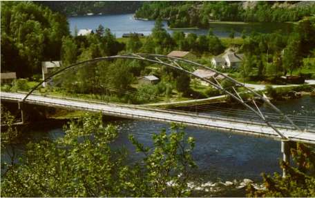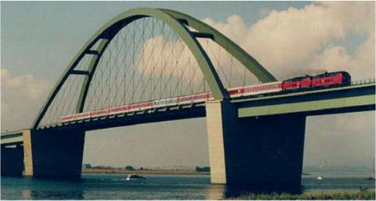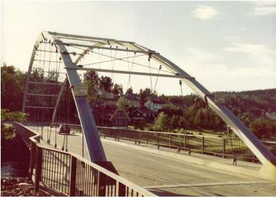 In that same year, another two network arches were constructed. The Bolstadstraumen bridge spanning 84 m was also designed by Per Tveit and built in Norway (Fig. 1). Also the Fehmarnsund bridge in Germany spanning 248 m (Fig. 2). The Fehmarnsund bridge is clearly a class bigger than the two Norwegian bridges, not only in span, but also in load carrying capacity. This bridge accommodates two road lanes and a single railway track.