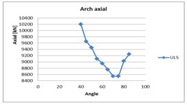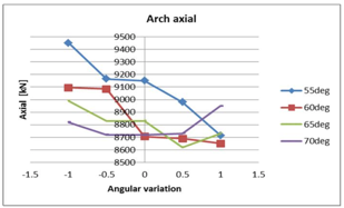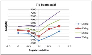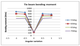 In Figure 15 we can see that tie beam axial force tend to increase with the increasing angle while bending moment shown in Figure 13 is influenced only by the angles over 70 degrees .