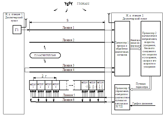 Рис. 2. Фазометрическая радионавигационная система управления движением магнитоплана
