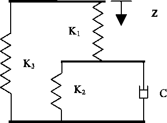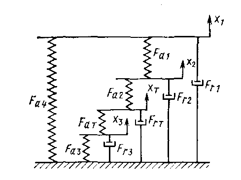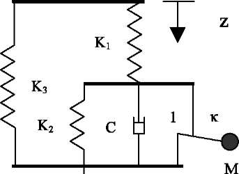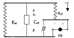 Recently, pneumatic springs have become very widely used on trans-regional trains, high-speed trains [3, 16]. The advantage of pneumatic spring as an element of spring suspension is that it can be used to realize large static deflections in the se-condary spring suspension (up to 300 mm) and to obtain a noise reduction in the passenger compartments. In addition, for lines with raised platforms it is necessary to maintain a constant floor height of the car regardless of the number of passengers in the car. This is provided by the operation of a le-velling valve and pneumatic springs [16]. It is ne-cessary to consider the generalized structure of an equivalent mechanical model, adopted on the basis of pneumatic spring tests (Fig. 1) [3].
