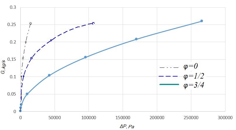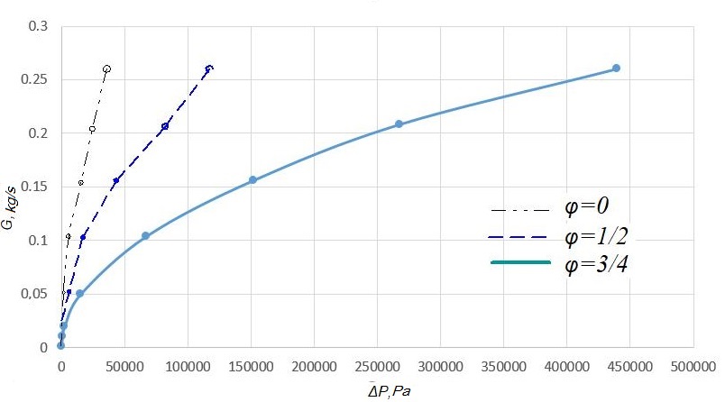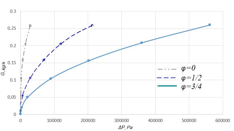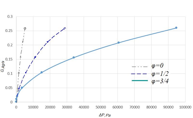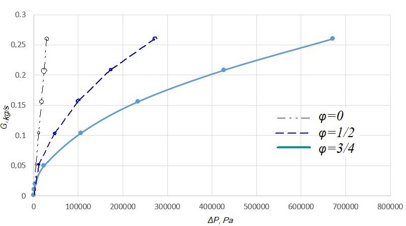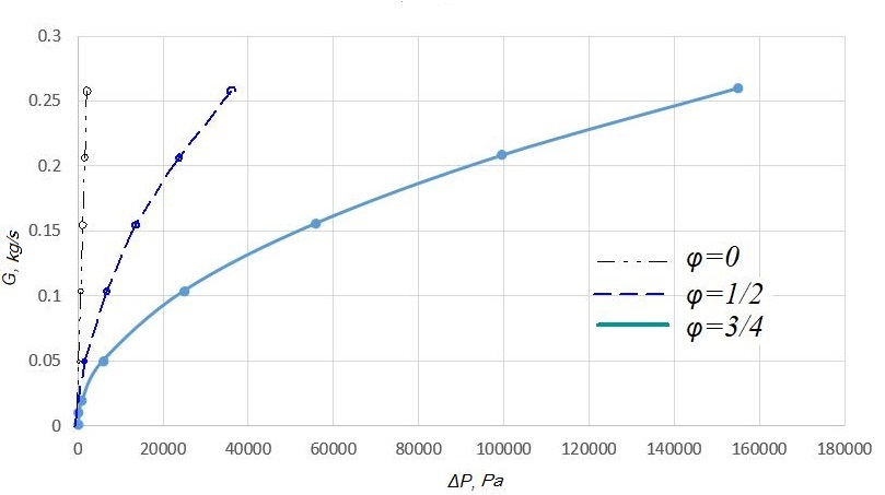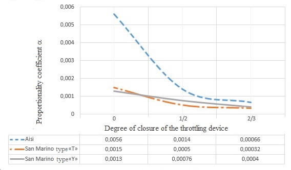 Purpose. This paper focuses on determination of the dependence of the working medium flow on the capacity of the throttling device, its geometric features and the pressure difference in the pneumatic spring cylinder and in the auxiliary reservoir. Methodology. Calculation of the dependence of the working medium and pressure drop is performed in two ways: 1) by numerical simulation of a stationary gas flow through a throttling element; 2) its analytical calculation expression using empirical relationships (control calculation to evaluate the reliability of numerical simulation results). For the calculation, three models of throttling devices were chosen. Dependence of the flow rate of the working medium on the capacity of the throttling device and its geometric features was determined based on the approximation of the dependency graphs of the pressure drop against the mass flow rate of the working medium. Findings. We obtained graphical dependencies between the pressure drop and the mass flow rate of the working medium from the two calculation options. Based on the results of calculations performed with the help of a software package with visualization of the results, we calculated a proportionality coefficient that describes the dependence of the working medium flow on the throttling device capacity and its geometric features for each of the throttling elements considered, with three degrees of closure. The air flow values, obtained by numerical simulation, are greater than the flow rates obtained from semi-empirical formulas. At the same time, they are in good qualitative agreement, and the quantitative difference averages 25%, which can be regarded as confirmation of the reliability of the nu-merical model. Based on the calculation results, we plotted the proportionality coefficient graphs against the degree of closure of the throttling device. Originality. The work allows determining the degree of influence of the frictio-nal component on the variation of the pressure difference in the pneumatic cylinder and the auxiliary reservoir of the pneumatic suspension system. Also, the work proposes a method to determine the dependence of the working medium on the capacity of the throttling device and its geometric features. Practical value. The ability to predict the operating parameters of the pneumatic system depending on the pneumatic resistance of the throttling device will improve the car running characteristics, increase the comfort of passenger transport, and also reduce the wear of the rolling stock and track gauge due to vehicle-track interaction.
