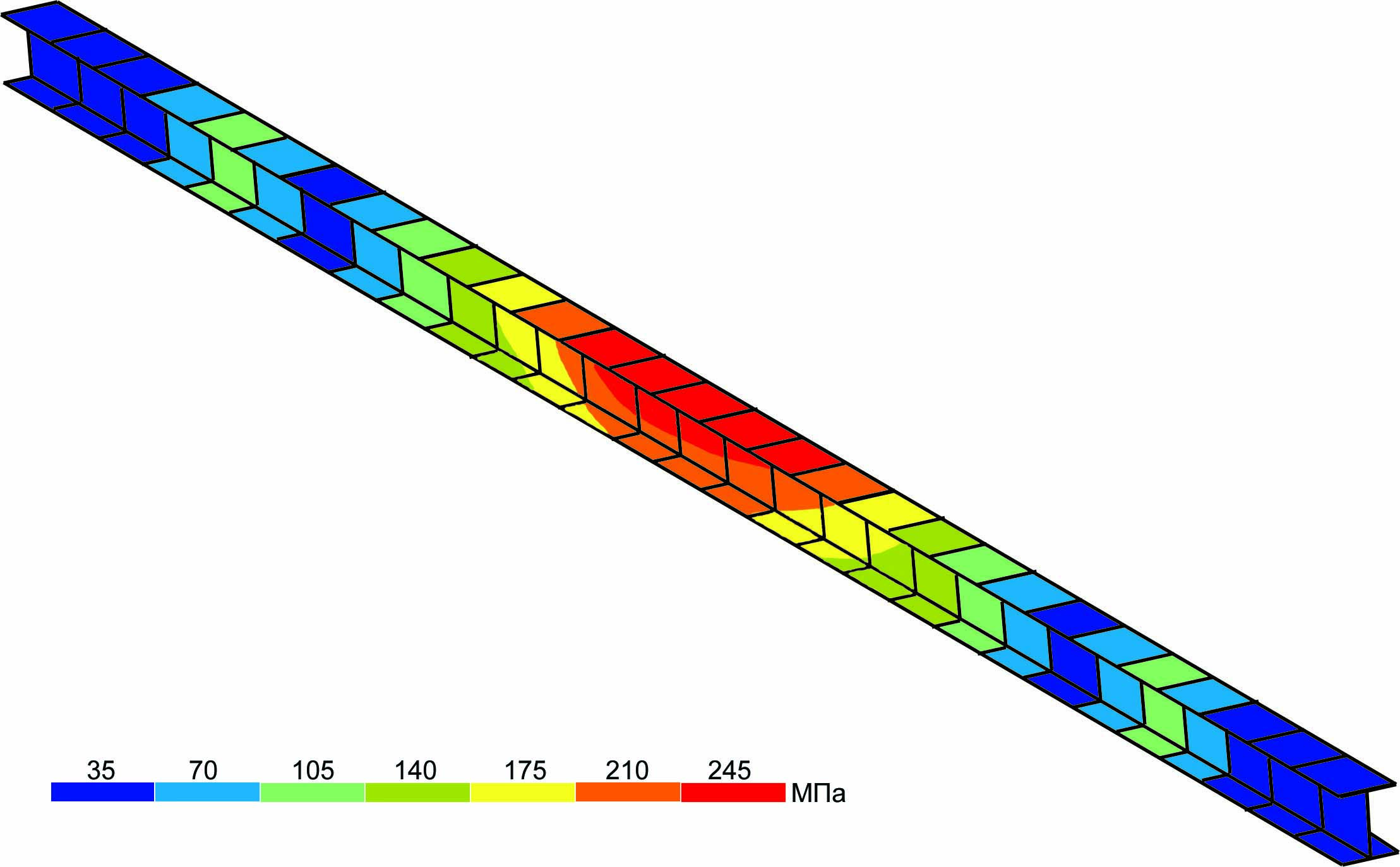 Ключевые слова: метод конечных элементов; прочность элементов подвижного состава; напряжение в хребтовой балке вагона; подвижной состав; хребтовая балка грузового вагона