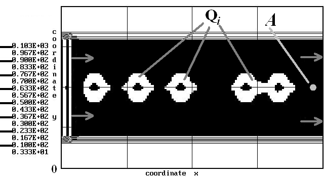 To solve Eq.1, 2 it is necessary to know the flow field in aeration tank. To simulate this flow field we use model of potential flow. In this case the governing equation is
