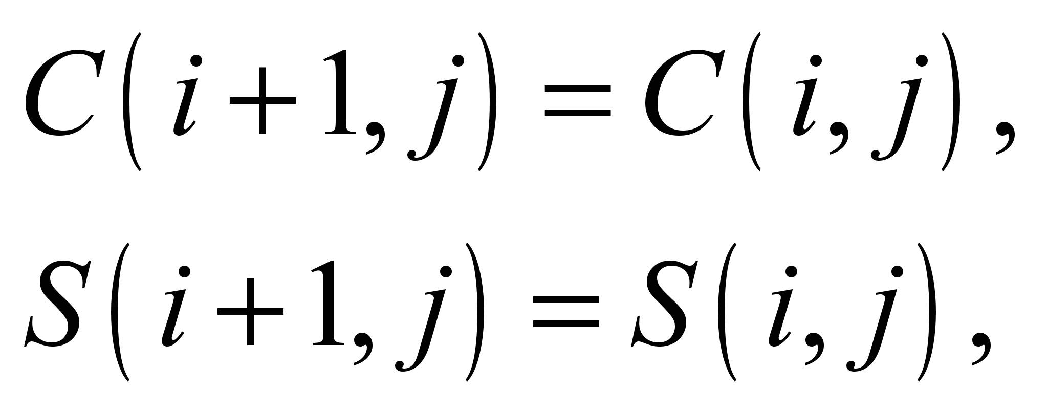 As the initial condition for each equation (5), (6), at each time step, we use the meaning of C, S obtained after computing Eq. 1, 2.