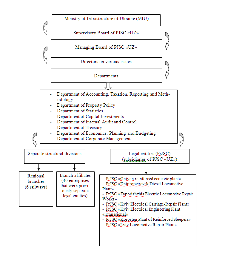 Fig. 1. Organizational structure of PJSC «Ukrzaliznytsia»