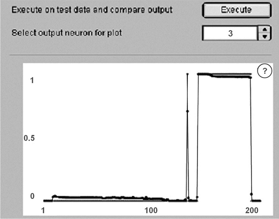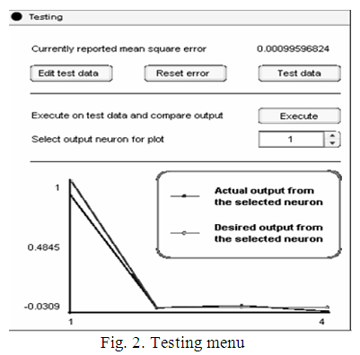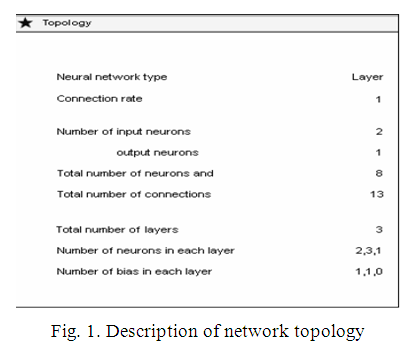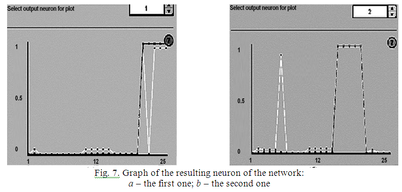 To determine the attacks (Back, Buffer_overflow, Quess_password, Ipsweep, Neptune) in the computer network, the Fann Explorer program created NN of 19-1-25-5 configuration, with 19 network traffic parameters inputted; training, testing (error 0.1) and evaluation of the received results (error 0.3) on the corresponding samples were conducted. In particular, the first neuron responsible for recognizing the Back attack detected four of the five threats.