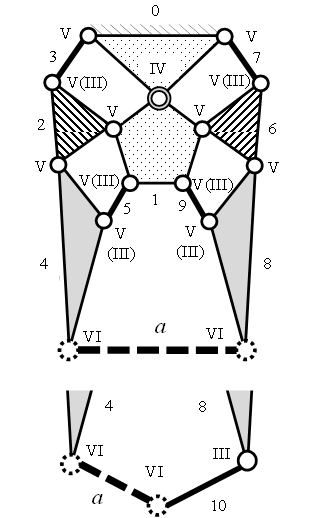 звеньев – 10, число соединений – 13, число