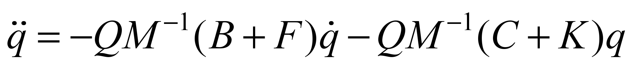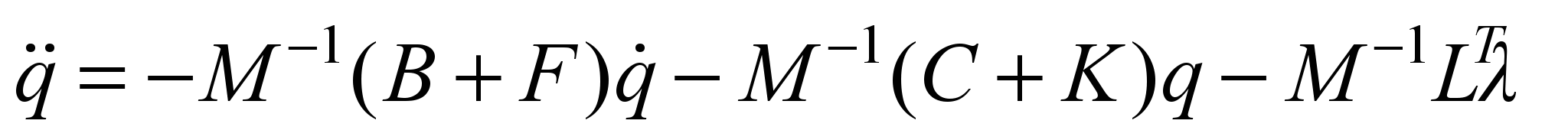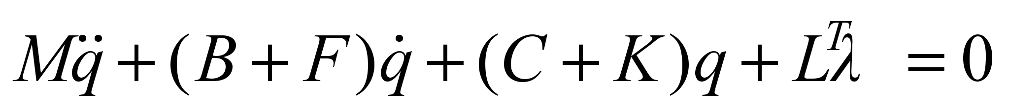 (without nonlinear and non-uniform terms describing the movement along a curve). Here q is the generalized coordinate vector; M is the inertial coefficient matrix; C, B are the rigidity and viscosity matrices; K, F are the matrices describing the wheel-rail interaction. Equation (1) is obtained if we remove the dependent generalized coordinates from the vector q using the equations of constraints. When applying the Lagrange equation of the I kind, another approach is used: instead of eliminating the elements of the vector q, they are all remained, the constraint equations are included in the full set of equations describing the system motion, and additional unknowns λ are introduced (in the amount equal to the number of constraint equations) so that all these equations can be solved. The result is the following system of equations: