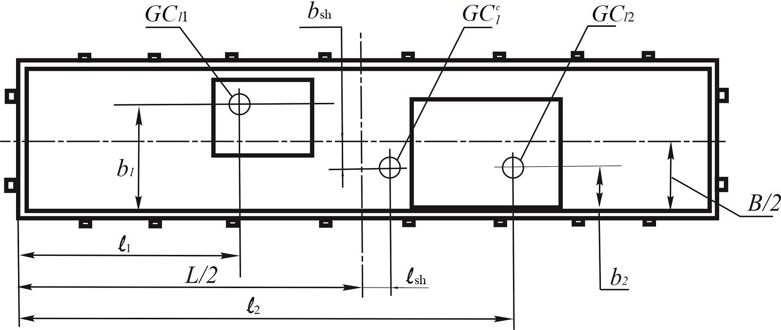 The above problems can be solved experimentally or theoretically. The first method, although it is sufficiently reliable, but expensive, requires a long time and cannot cover all possible options of the load positioning. Therefore, it is necessary to develop a general theoretical method for studying the oscillation of the flat wagon with asymmetric placement of loads of different weights, both with spring-dissipative elements between the load and the flat wagon body, and without them [3].