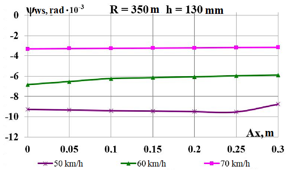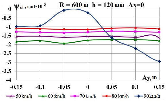 Ключевые слова: груз; вагон-платформа; забегание боковых рам тележки; смещение центра тяжести груза; угол виляния колесной пары; скорость движения; фактор износа