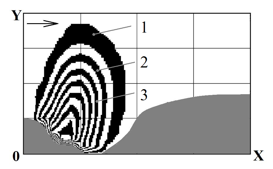 1) on the walls of the open pit mine, as well as on other solid surfaces located inside it, a following boundary condition is set: P/n = 0, where n – is unit vector of external normal to solid wall;