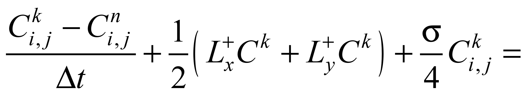 Taking into account the above notation for difference operators, the original mass transfer equation is represented as: