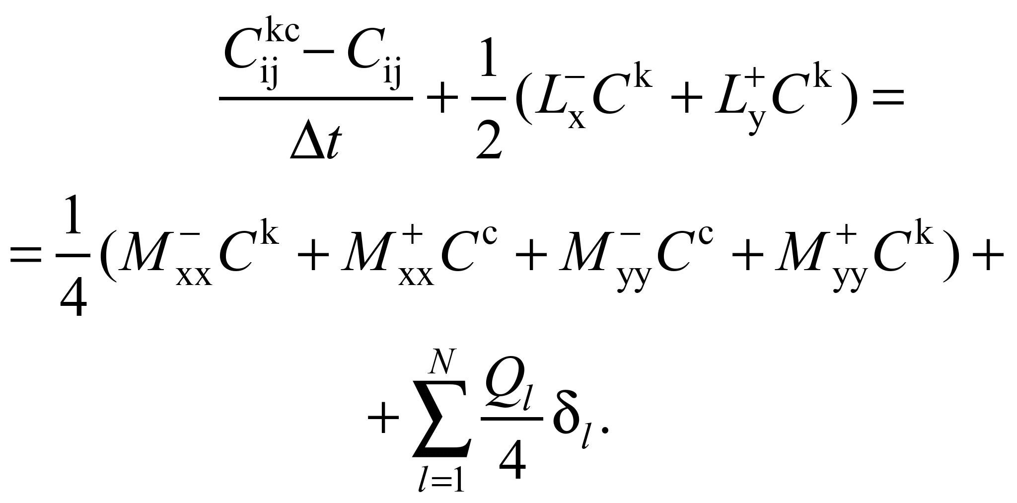 Before a numerical solution of equation (2), it was splitted, at the differential level, as follows [3]: