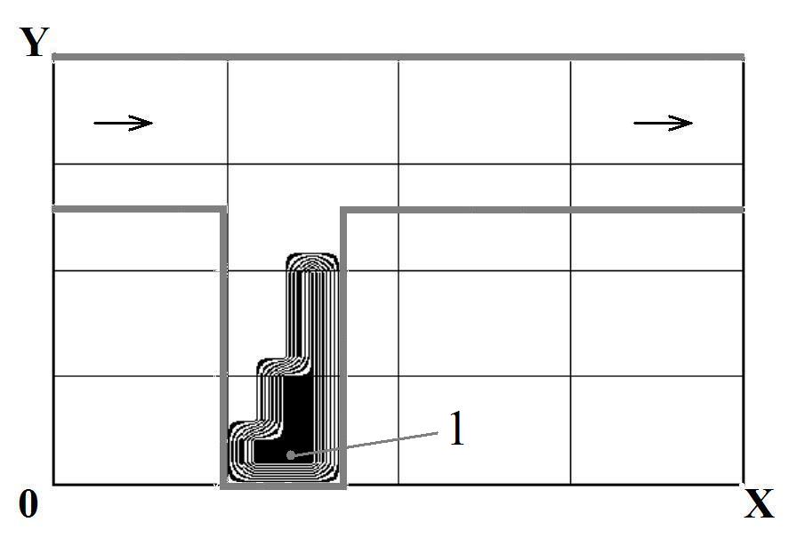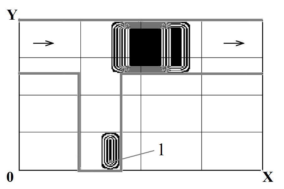 where С – is pollutant concentration in the air, g·m-3; u, v – are airflow velocity components in the mine working, m·s-1; =(x, y) – are turbulent diffusion coefficients, m2·s-1; (xi, yi) – are emission source coordinates, m; Qi – is pollutant emission rate at the point (xi, yi), g·s-1; (x xi)(y yi) – are Dirac's delta function, which is used to simulate the entry of a pollutant into the mine working.
