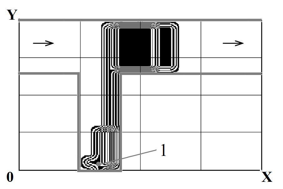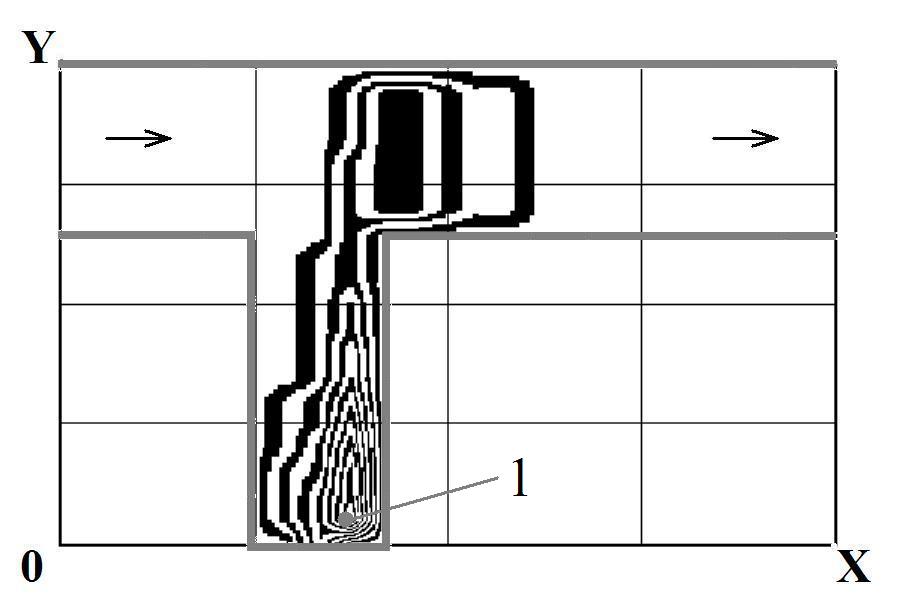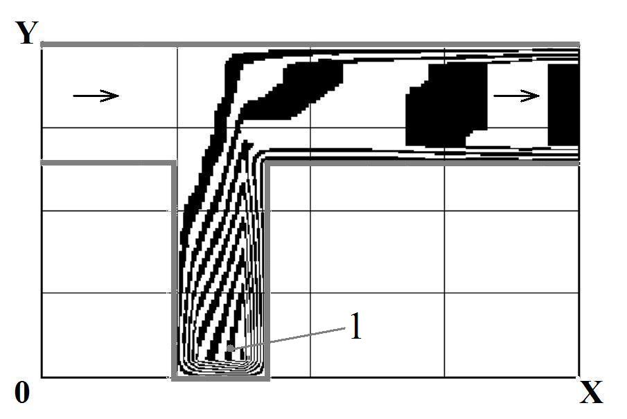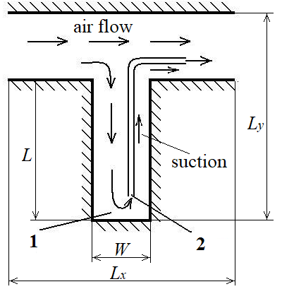 1) on the walls of the dead end mine working, as well as on other solid surfaces located inside it, a boundary condition is set: P/n = 0, where n – is unit vector of external normal to solid wall;