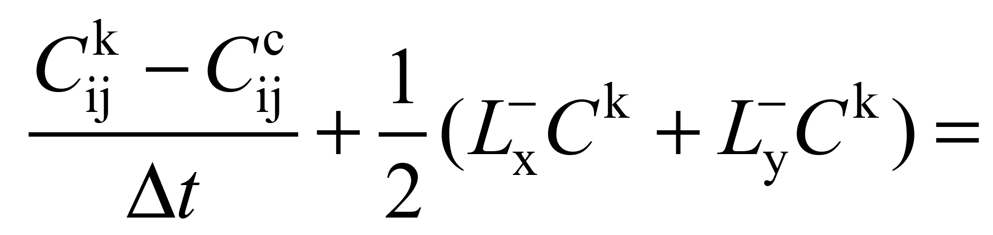 The two-dimensional dust transport equation is written in a difference form [4]: