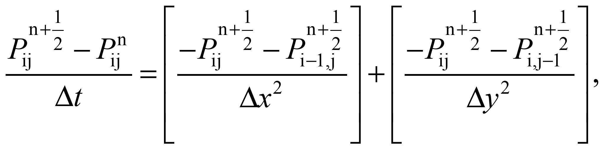 1) on the first step of splitting k = 1/4 the difference equation has the appearance: