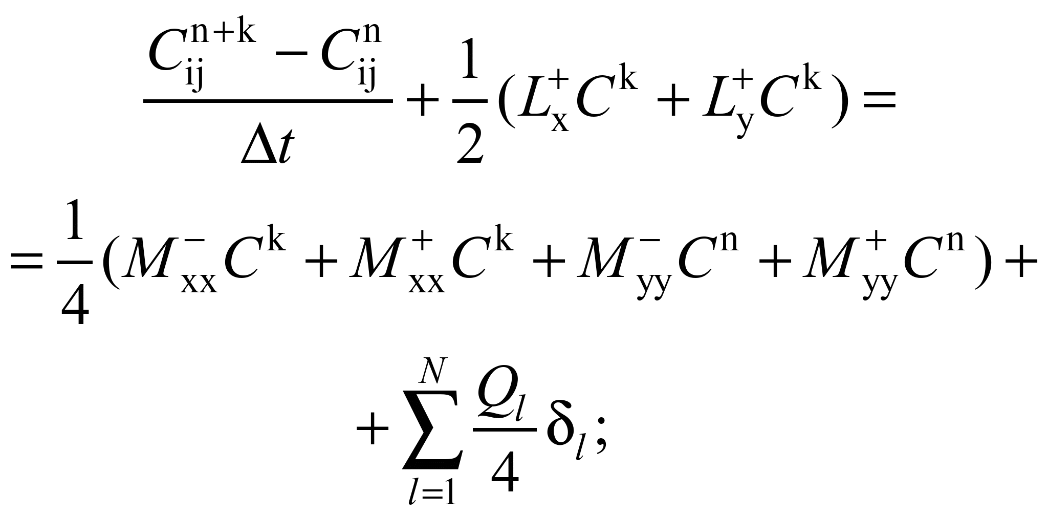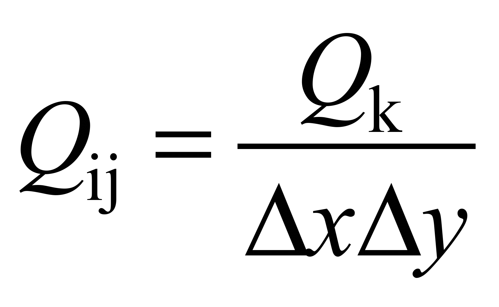 where Qk – the intensity of the emission of the k-th point source of dust emission, which is located in the difference cell «ij».