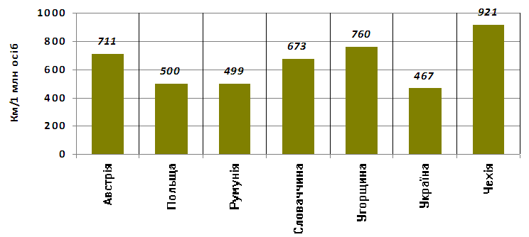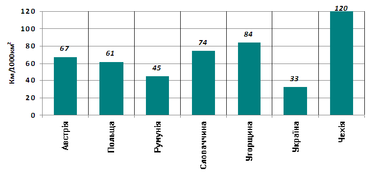 Зважаючи на вищевикладене, дослідження відмінностей української залізничної інфраструктури розглянуто як для країн, з якими Україна межує на західному кордоні, так і для країн, до яких може бути заведена широка колія (Австрія, Чехія).