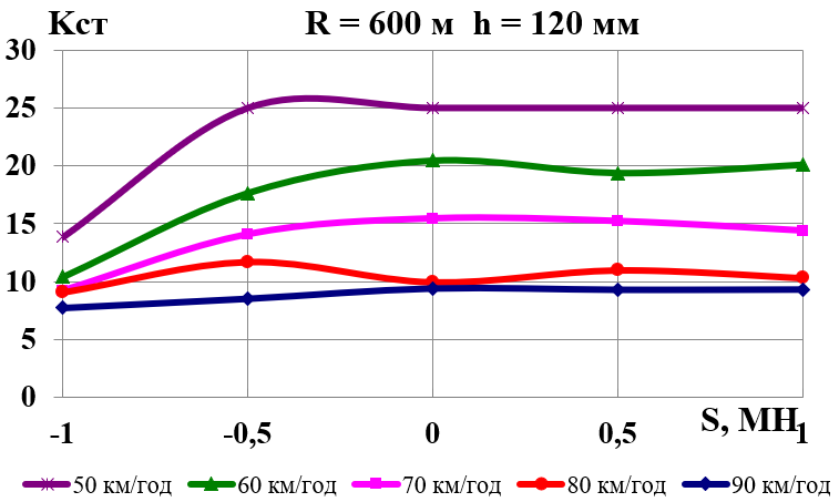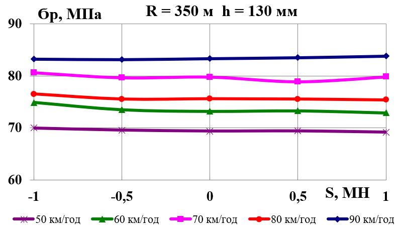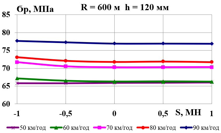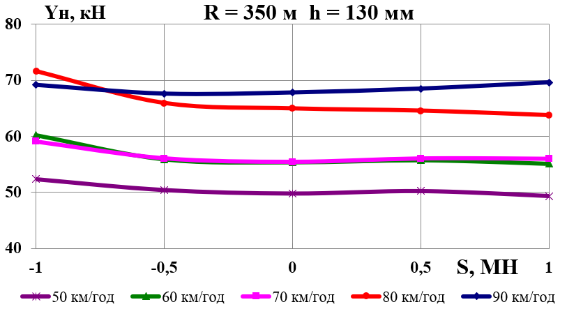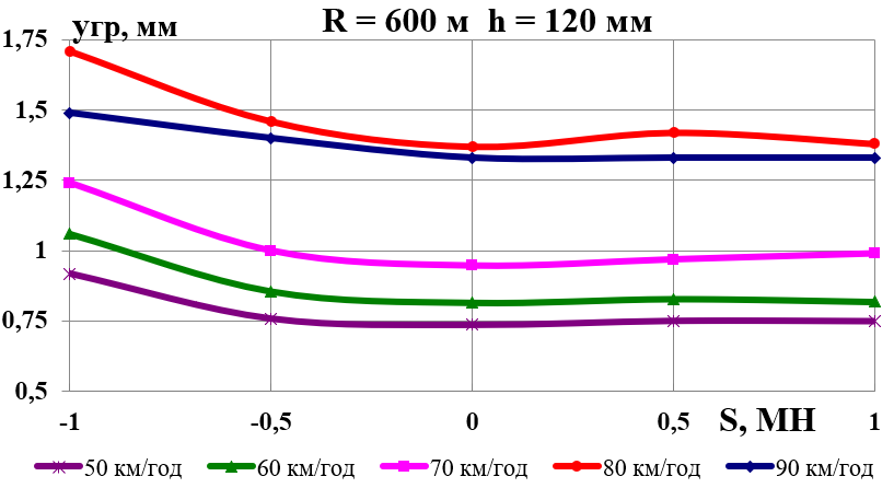 У разі збільшення швидкості руху зменшується коефіцієнт зчеплення; крім того, у певні моменти в результаті вертикальних коливань надресорної будови колісна пара частково розвантажується. Усе це призводить до зменшення сили тертя між колесом і рейкою в поперечному напрямку та ударного навантаження рейки гребенем колісної пари. Тому навіть за малих значень поперечних складових стискних сил, які виникають через перекіс вагонів у рейковій колії в разі стиснення поїзда хвостовими вагонами, відзначається різке зростання горизонтальних сил у колії, що сприяє не тільки її розшивці, але й перекиданню (вивертанню) рейки на прямих ділянках колії [5, 9–11].