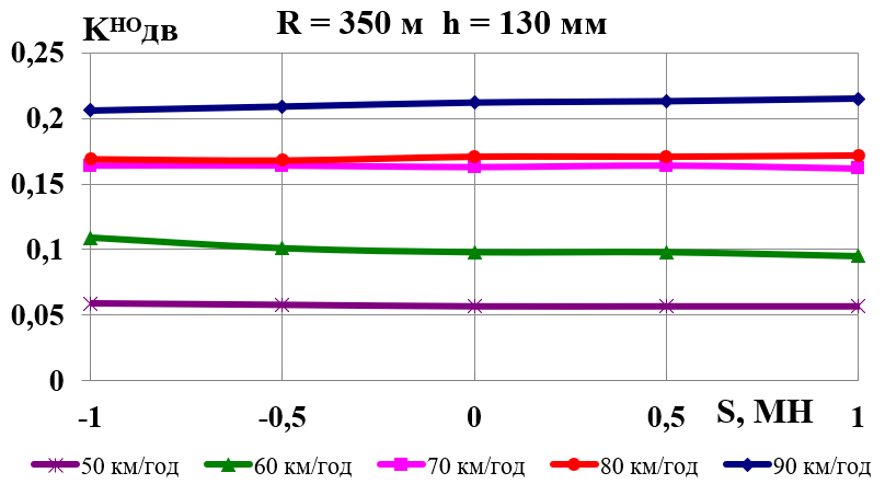 криволінійних ділянках колії середнього