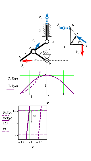 і досягає одиниці, якщо кут φ = π/4. За ведучого кривошипа 1 ЕІПР виразимо через відношення відрізків плану: