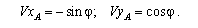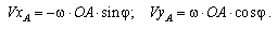Проєкції швидкості точки А кривошипа на осі: