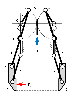 Keywords: mechanical gripping device; guiding mechanism; energetic motion transfer index (EMTI); pressure angle