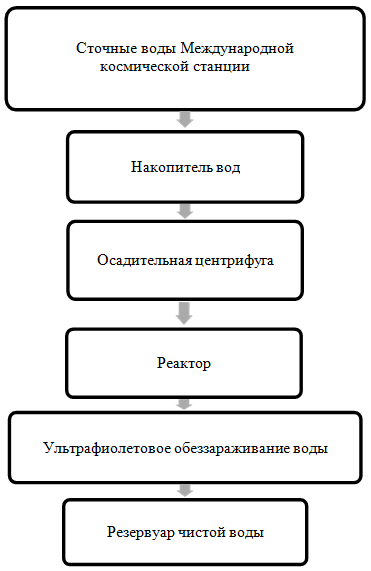 Совершенно очевидно, что в условиях длительных космических полётов применение систем водообеспечения, основанных на запасах, является невозможным. В связи с этим одной из наиболее приоритетных задач является разработка технологической схемы регенерации воды [13].