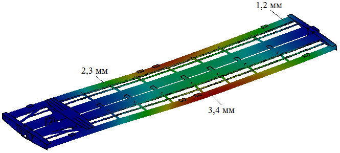 Ключевые слова: вагон-платформа; сочлененный вагон; несущая конструкция; динамическая нагруженность; прочность; контейнерные перевозки