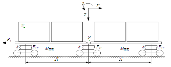 Рис. 2. Розрахункова схема вагона-платформи зчленованого типу