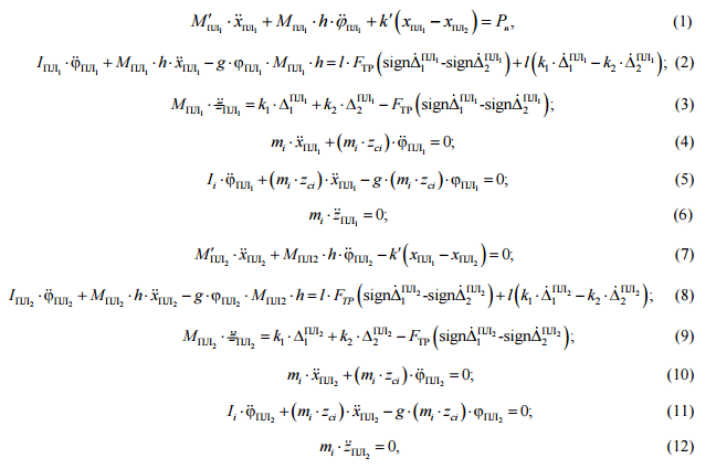 Під час складання математичної моделі враховано, що кожна секція вагона-платформи має власну ступінь вільності. Це припущення обґрунтовано тим, що конструкційні особливості пристрою зчленування дозволяють здійснювати такі переміщення.