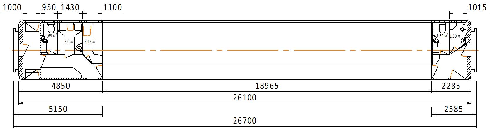Компонувальні схеми з одним тамбуром, розміщеним у середній частині кузовів вагонів завдяки поділу пасажирських салонів на дві частини, забезпечують більш комфортабельні умови перевезень пасажирів за рахунок перебування в кожній частині меншої кількості пасажирів.