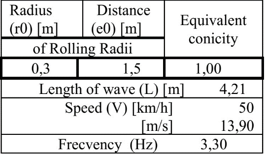 Wavelength of the lateral oscillation (L) is independent from the speed (v) and from the amplitude of the lateral oscillation. Only the gauge (e0), the half angle of the wheel taper (tanγ) and the radius of the wheel (r0) has an effect on its magnitude (Klingel formula).