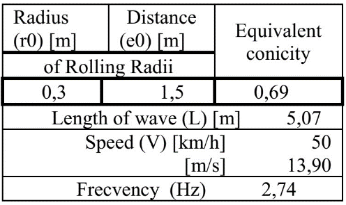 The motion of a non-linear tapered wheelset is not sinusoidal, but «similar» to that can be characterised by equivalent conicity. The equivalent conicity depends on the amplitude of lateral swaying and it is the tangent of the half-cone angle of a tapered wheelset, whose hunting oscillation wavelength is the same as the real wavelength on theoretically modeled rails.