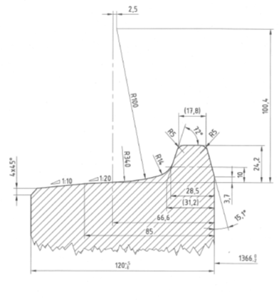 The 1:20 linear tapered wheel profile was in use, which was even more unfavorable in the aspect of running characteristic. The Siemens Combino «wear» wheel profile became generally used at the BKV Zrt.