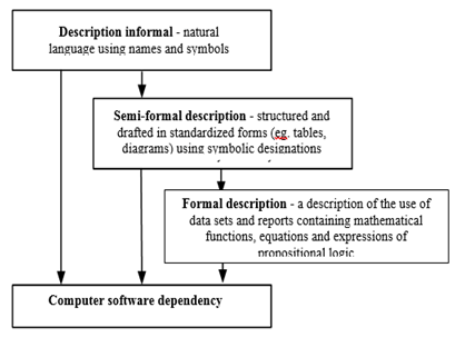 Development of informal, semi-formal and formal (i-s-f) descriptions, and consequently the system designing should be in particular consistent with the assumptions and guidelines of many documents and regulations. The beginning of the design process is determined by the informal description documentation underlying the semi-formal description, which in turn becomes the basis for a formal description, which, as the only form of description, enables algorithmization and development of dependency computer software. This means that any errors committed or not detected at the first stage of the process, i.e. in the course of development of informal records, are usually reproduced in subsequent process stages. All forms of «i-s-f» description are mandatory documents also used i.a. for the purposes of validation, i.e. conformity (consistency) verification, assumptions and testing review. However, despite the clearly formulated guidelines for the design principles, in practice, there is no indication of all the substantive description elements. This enables the designers to achieve the various control-command and signalling system concepts. Certain conditions that should be fulfilled by any «i-s-f» descriptions were indicated. These conditions include clarity of information, completeness of documentation and the principle of generation of the subsequent document on the basis of algorithmization he previously developed documents.