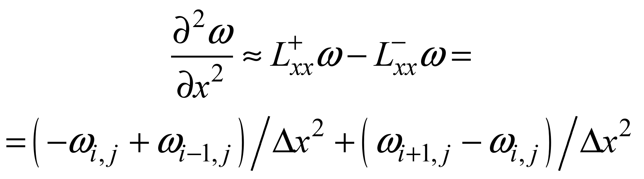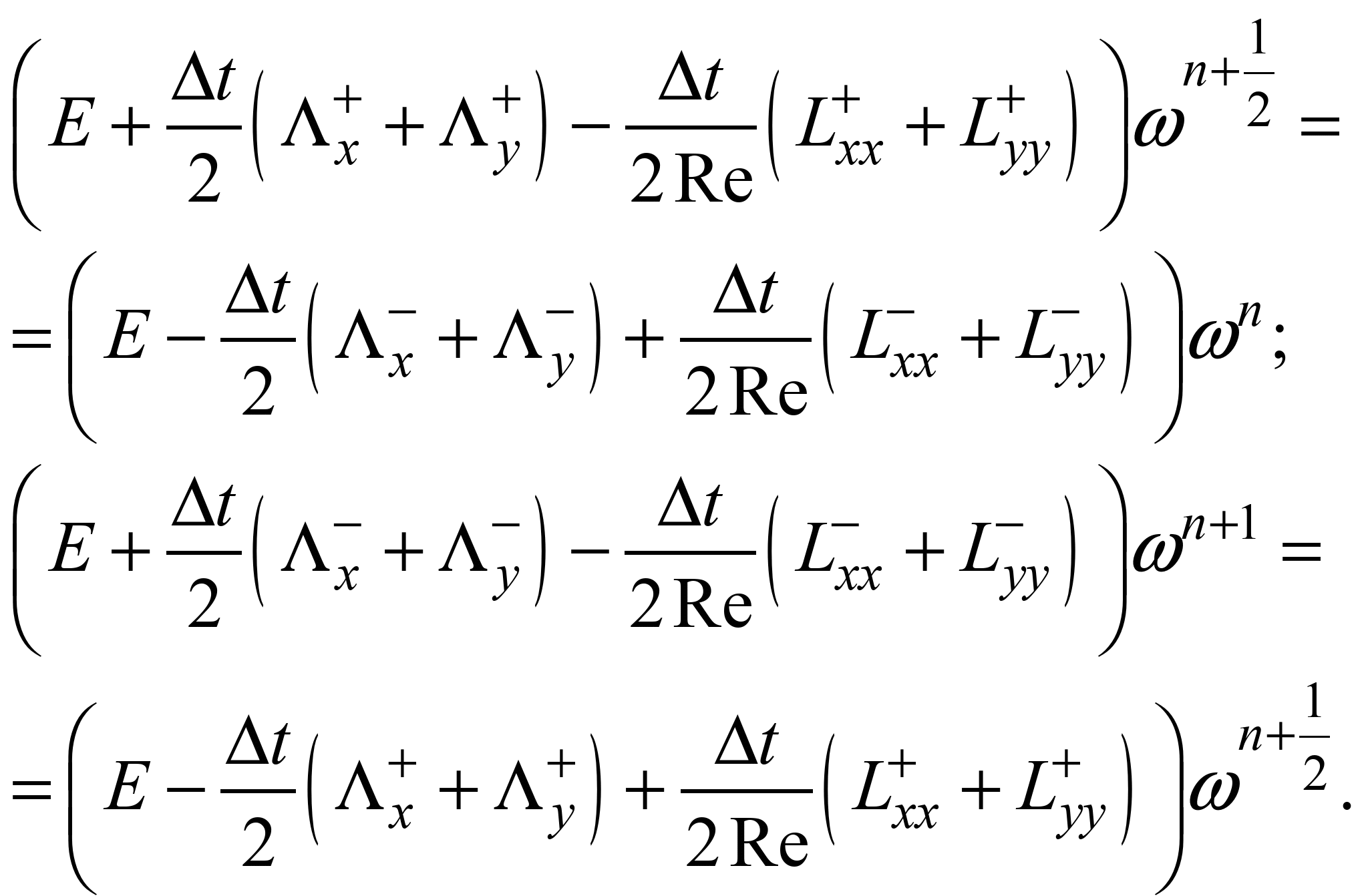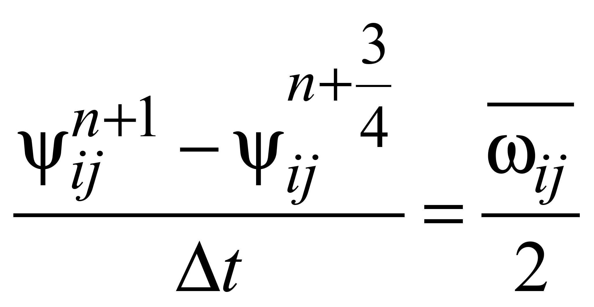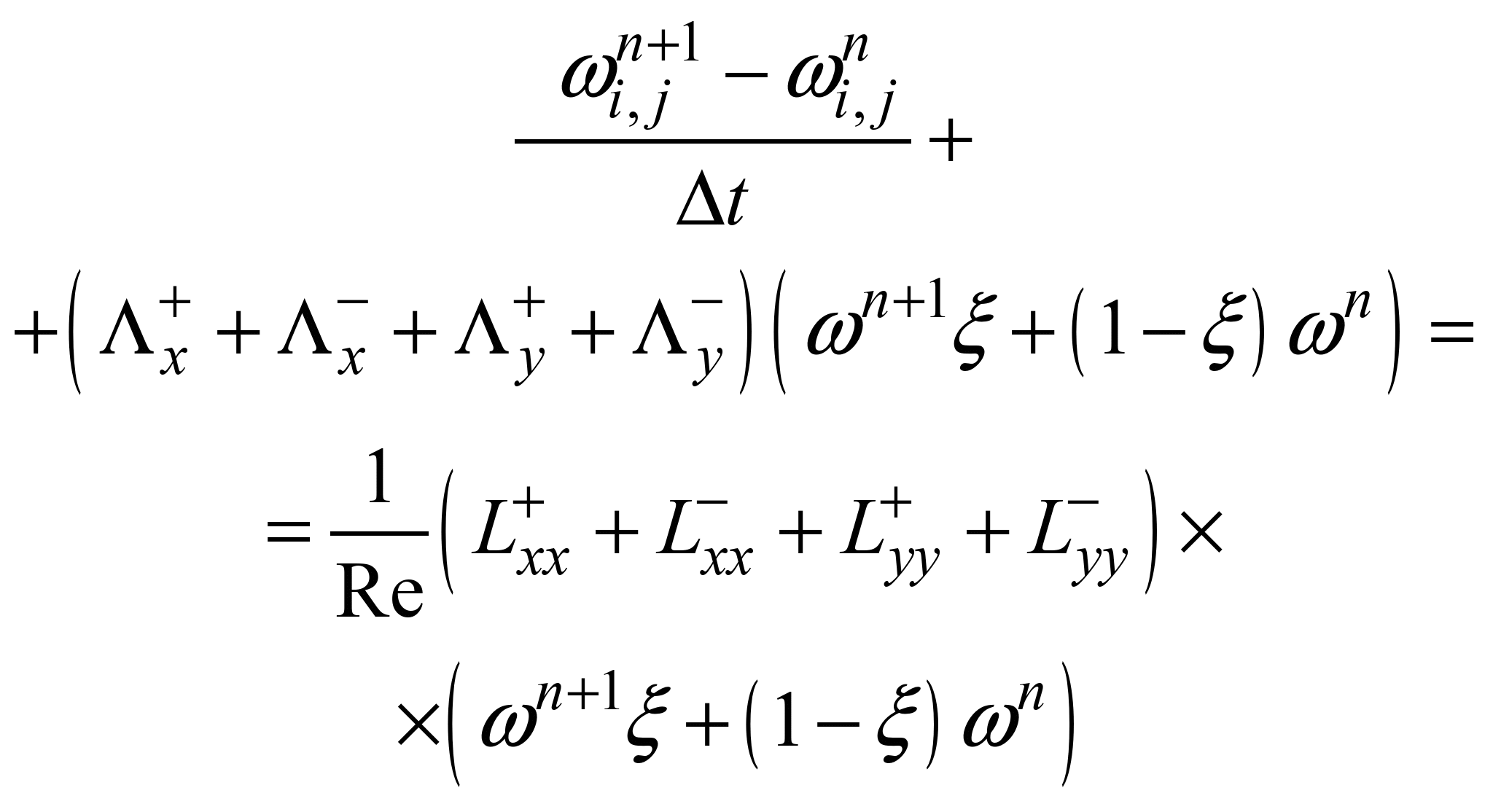 The change triangle difference scheme for equation of vorticity transfer is written as follows